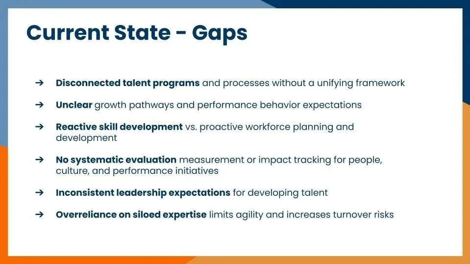 Unclear role expectations and the absence of a talent capability foundation were driving performance decline and low employee experience ratings. This prevented an effective L&D roadmap tied to targeted needs. I led the program strategy to establish and integrate Core, Leadership, and Role-Specific capabilities into talent processes and people development programs, creating alignment between role expectations, culture, and performance.