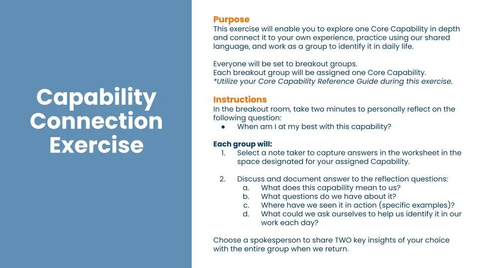 Designed capabilities aligned to the company Vision & Core Values with full leadership approval.