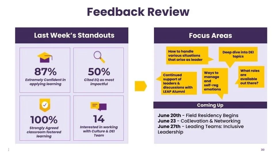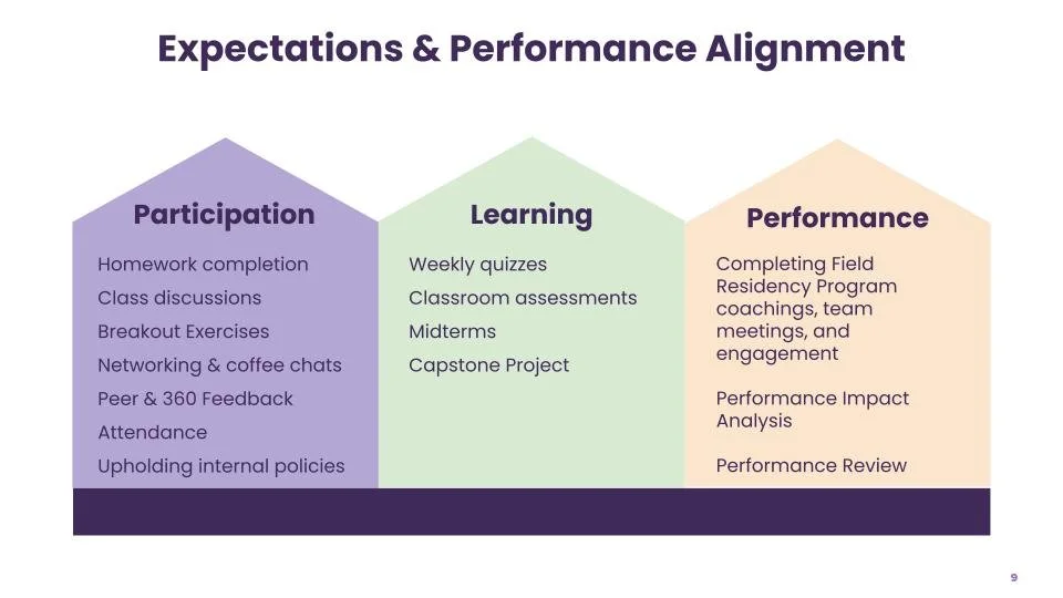 Established a measurement framework integrating 360 feedback methods through all phases of the program cycle.